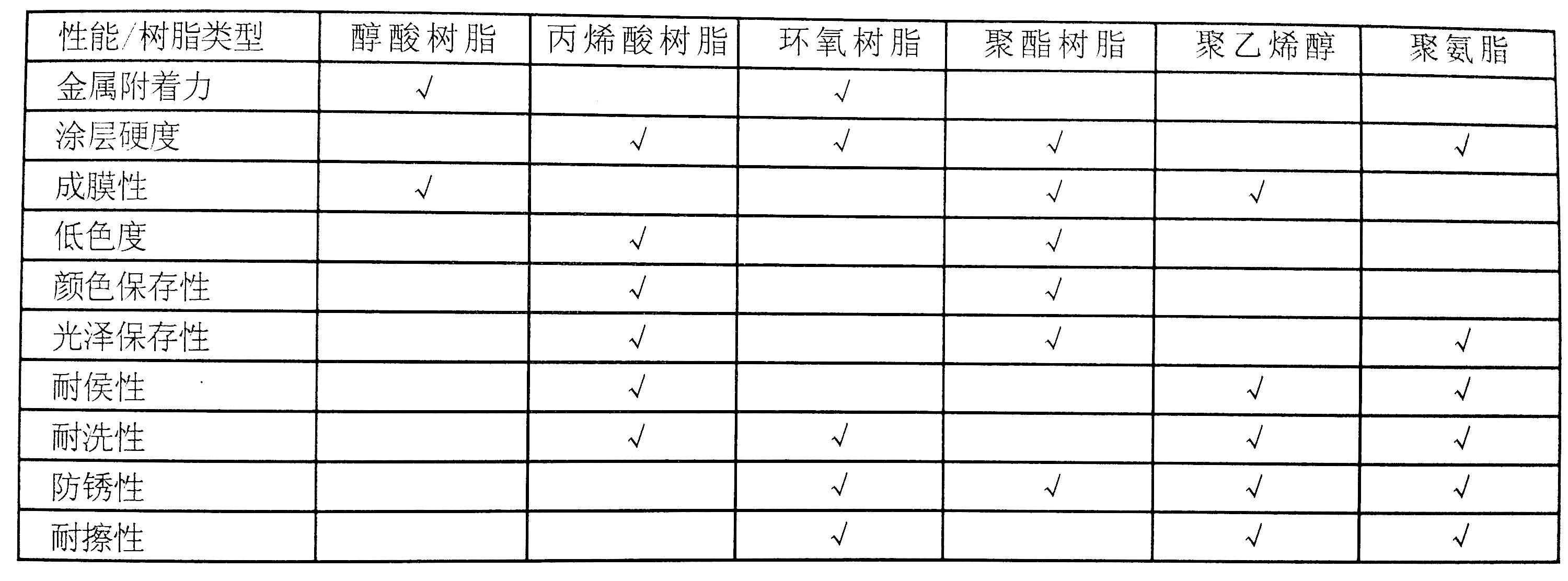 下表列举可与"美镙丝"氨基树脂交联的主要合成树脂的特性